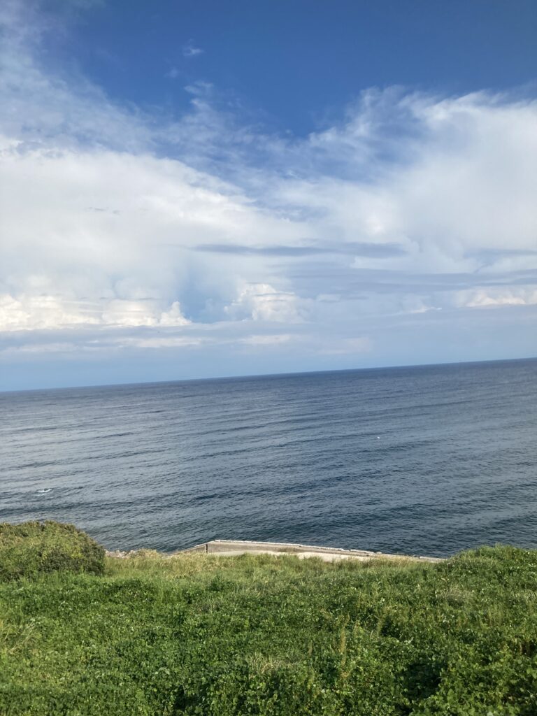 時折、日本海が見え隠れします。