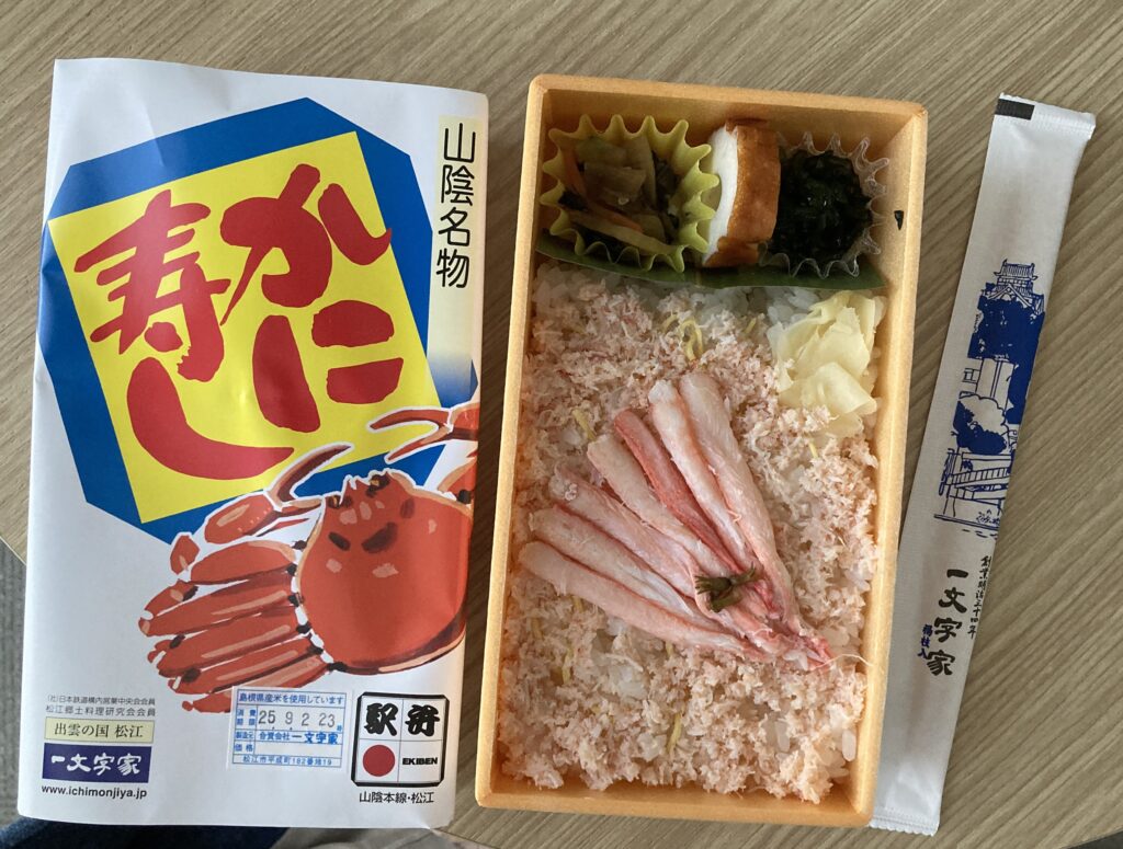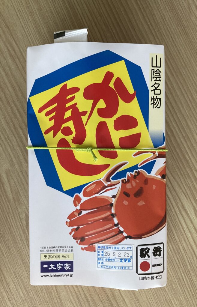夕飯に、出雲市駅のJR西日本のお土産屋さんでかに寿司を購入。