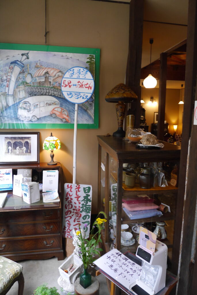震湯カフェ内蔵丞(くらのじょう)カフェ前が町営バスのバス停です。