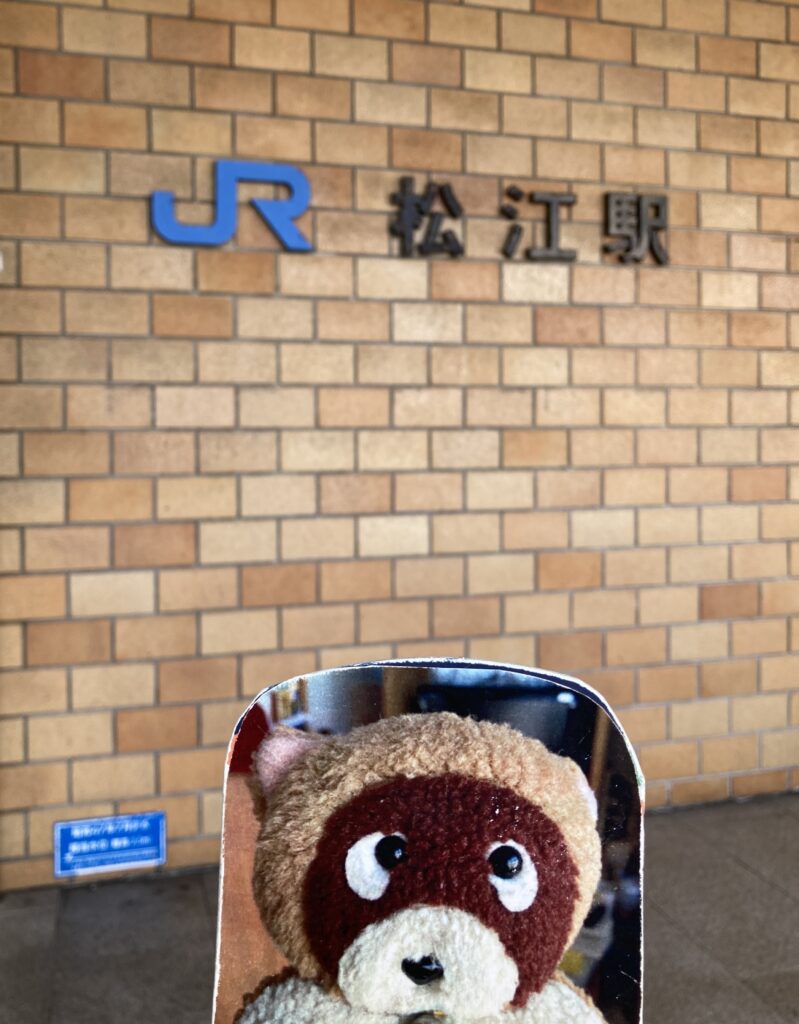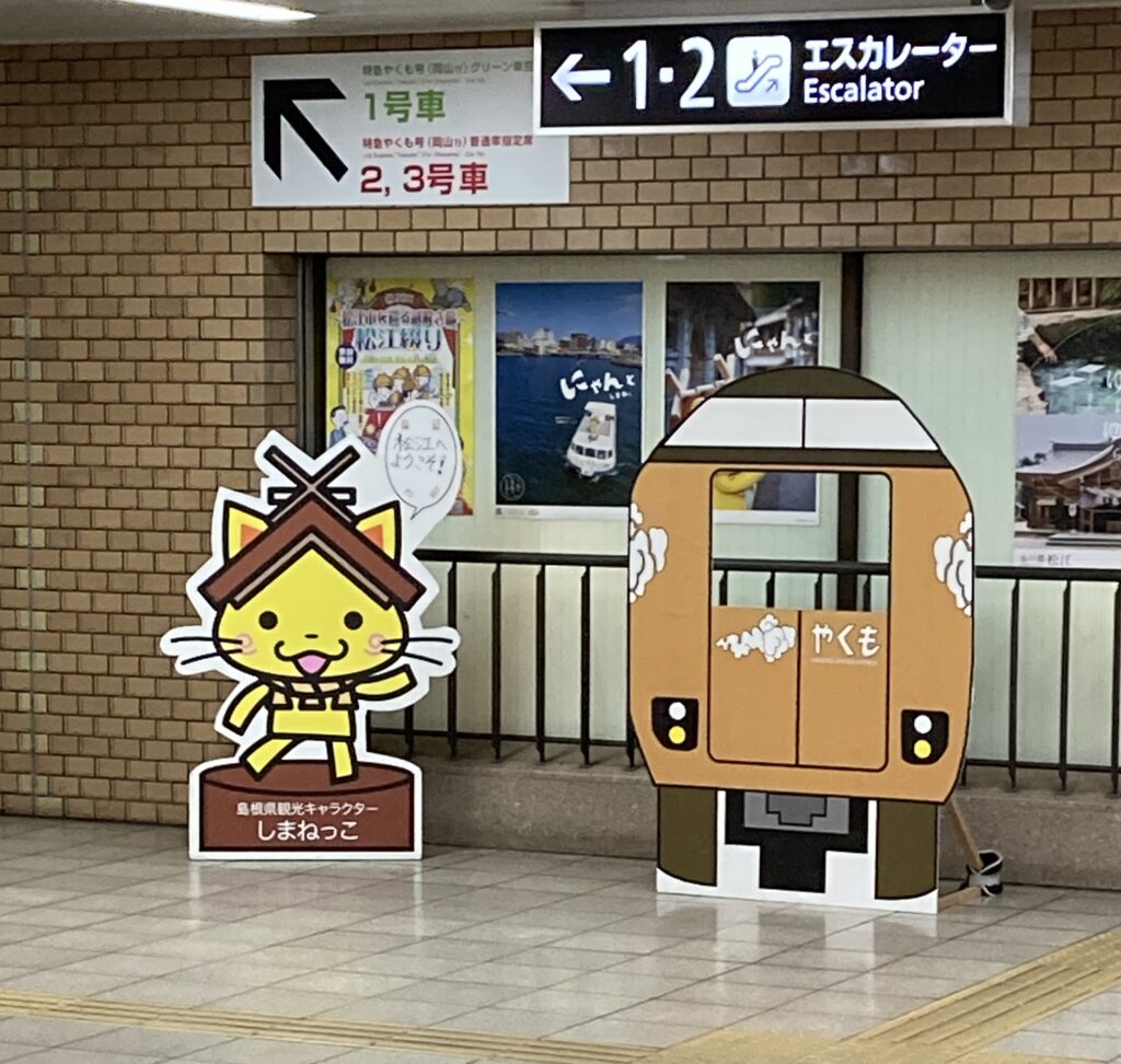 松江に到着。しまねっこのお迎えです。