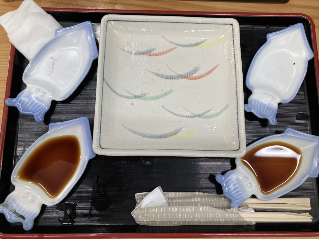 本当は、ここに白イカのお刺身があるはずだけど・・・