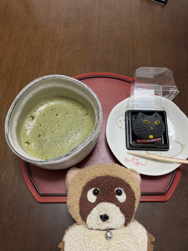 お次は、お姉さんのお土産のハロウィン🎃のねこ🐈の生菓子を食べます♪