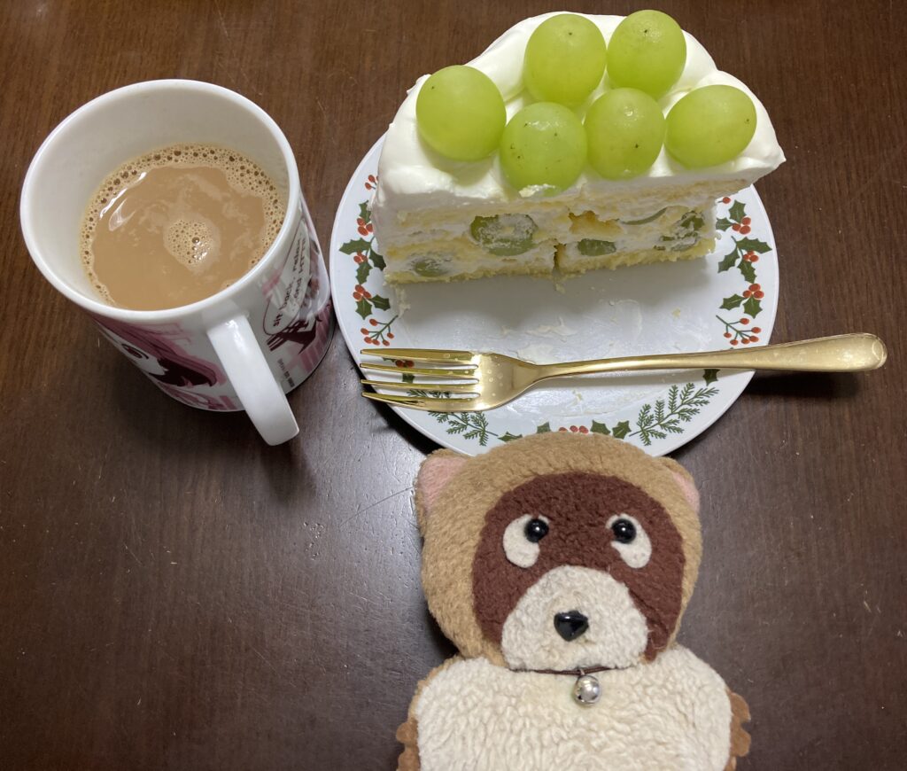 今が旬のシャインマスカットで飾っています。中にも入っています。