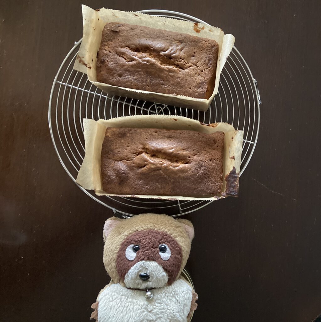 HOME > 料理 > お菓子作り > お菓子作り ぽんちゃん、キャラメルマーブルパウンドケーキを焼く⁉️ 2025年11月16日 今日は、2025年11月16日の日曜日。お使い物に使うパウンドケーキを作ります。今まで数回成功し、美味しいとのGOOD評価を頂いたキャラメルマーブルパウンドケーキを焼きます❣これ結構キャラメルの苦味が良いお味感を醸し出しています。オーブン前で記念写真のぽんちゃん❣ あら~たいへん❣ ねこ印のすずが曲がっています。 180℃ 35分で焼き上がりました。 1晩袋で覆って熟成させ、明日の夕方袋詰めします。上手くマーブル模様が出ています様によろしくお願いします⁉️ スポンサーリンク スポンサーリンク -お菓子作り
