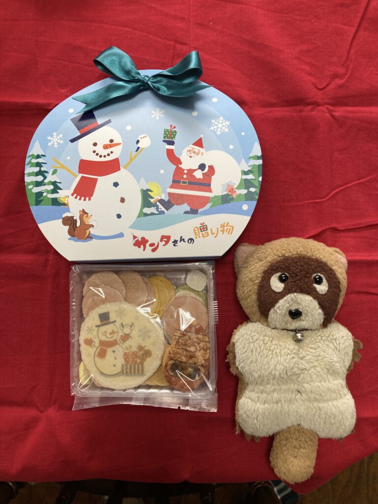 ぽんちゃん、サンタさんから頂いたお菓子を食べる⁉️