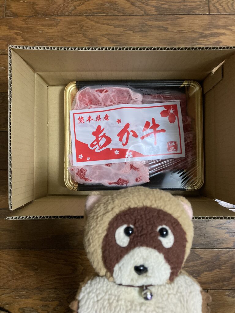 今日は、2025年12月14日の日曜日。長期間の外出で到着日を変更して頂いていた南小国町産のあか牛すき焼き用牛肉、只今到着しました♪パチパチと湧きました⁉️