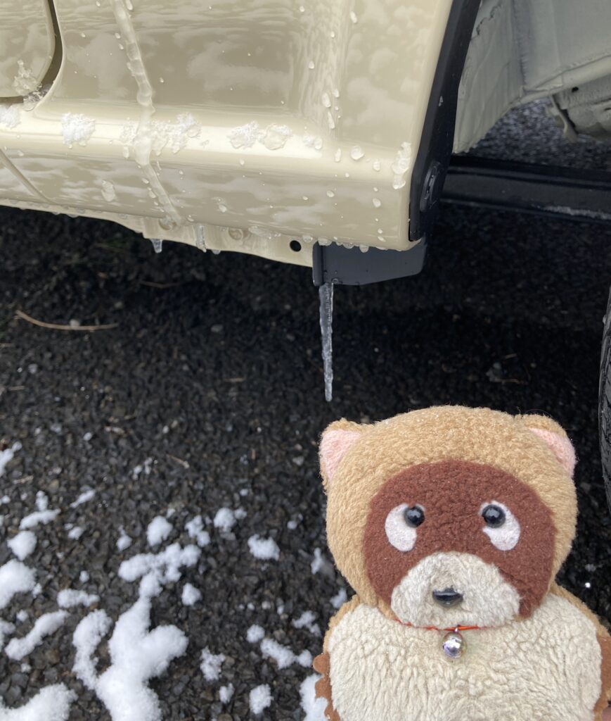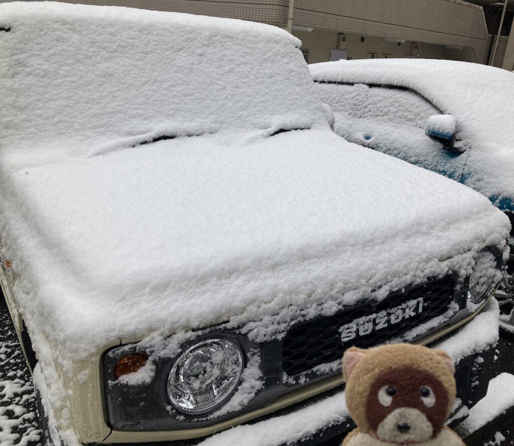 HOME > その他 > イベント > イベント 車の話 ぽんちゃん、雪やこんこんです⁉️ 2026年2月8日 今日は、2026年2月8日の日曜日。朝、目覚めたら辺りが明るい感じがするのは、きっと雪が積もっているのではで❓お外に出ました‼️辺り一面銀世界、2〜3cm位の積雪です。 ぽんちゃんの愛車、ジムニーくんにも、つららが発生・・カチカチです🥶 ジムニーくんも雪が積もって寒そうです♪ まだまだ冬眠ですよねェ❓早く春が来ないかなあ⁉️ スポンサーリンク スポンサーリンク -イベント, 車の話
