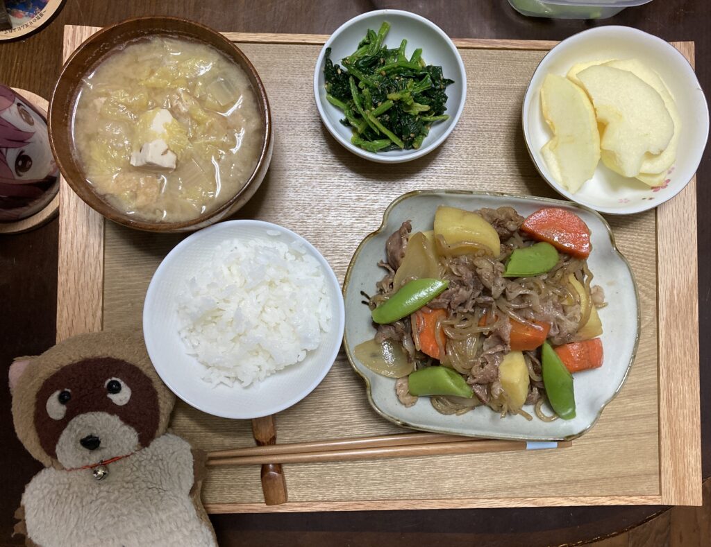 ぽんちゃん、夕飯は、肉じゃがです⁉️