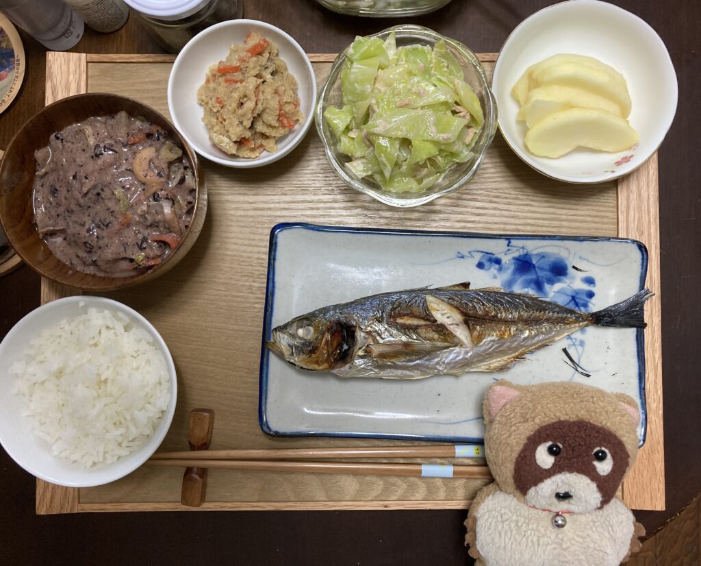 ぽんちゃん、久々にアジの塩焼きを食べる⁉️