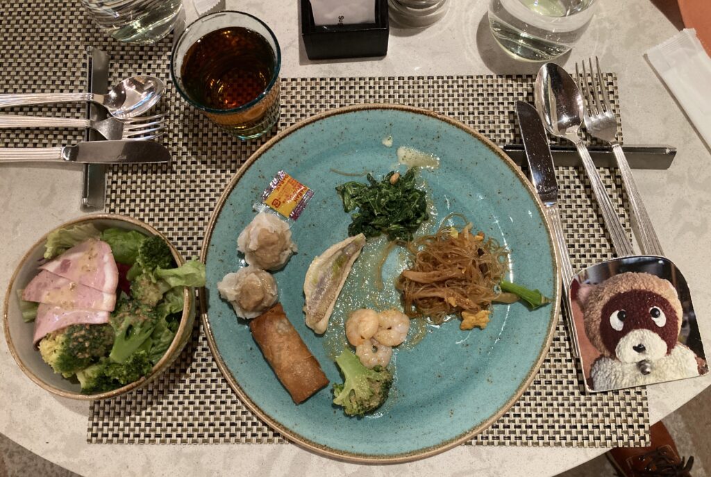 焼売と春巻き、鶏肉多くて、ぽんちゃんは×です。